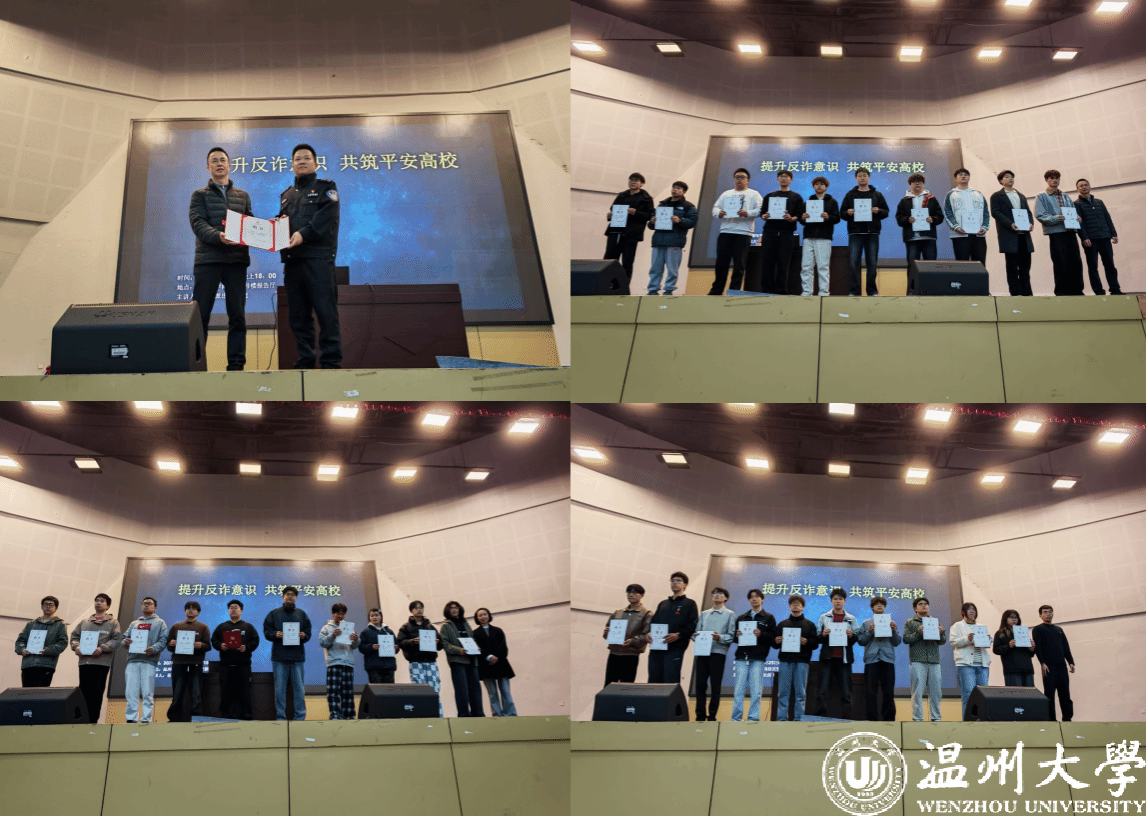 为切实提升全院学生反诈防骗意识,守护师生财产安全,织密校园安全防护网,3 月25 日晚,温州大学机电工程学院在南校区 9 号楼报告厅顺利开展反诈专题宣讲会暨平安导师、反诈先锋聘任仪式。