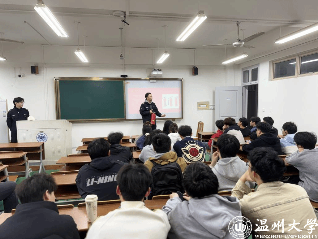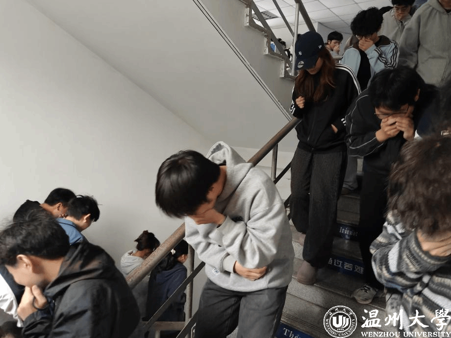 演练正式启动后,唐皓老师和学校保卫处消防科老师首先为在场师生细致讲解基础消防安全知识,同时结合学院教学楼楼层布局、疏散通道走向等关键信息进行全面说明,让师生提前熟悉应急疏散相关要点。紧接着,演练模拟教学楼突发火灾场景,各楼层引导员迅速到岗履职,同步寻求外部支援。