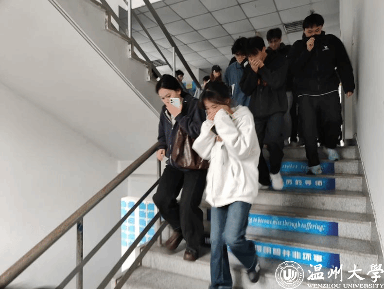 在学院现场负责人唐老师与安全保卫处工作人员的协同配合、统一指挥下,所有参训师生严格遵照消防安全演练规范要求,全程保持弯腰捂鼻的正确避险姿势,沿着提前规划好的疏散路线快速撤离。撤离途中,全体人员自觉靠右有序前行,主动将左侧通道预留为应急救援通道,整个撤离过程有条不紊,无拥挤、推搡、滞留等情况,所有人员均快速抵达一楼指定安全集结区域,现场工作人员随即完成人员清点与信息核对工作。